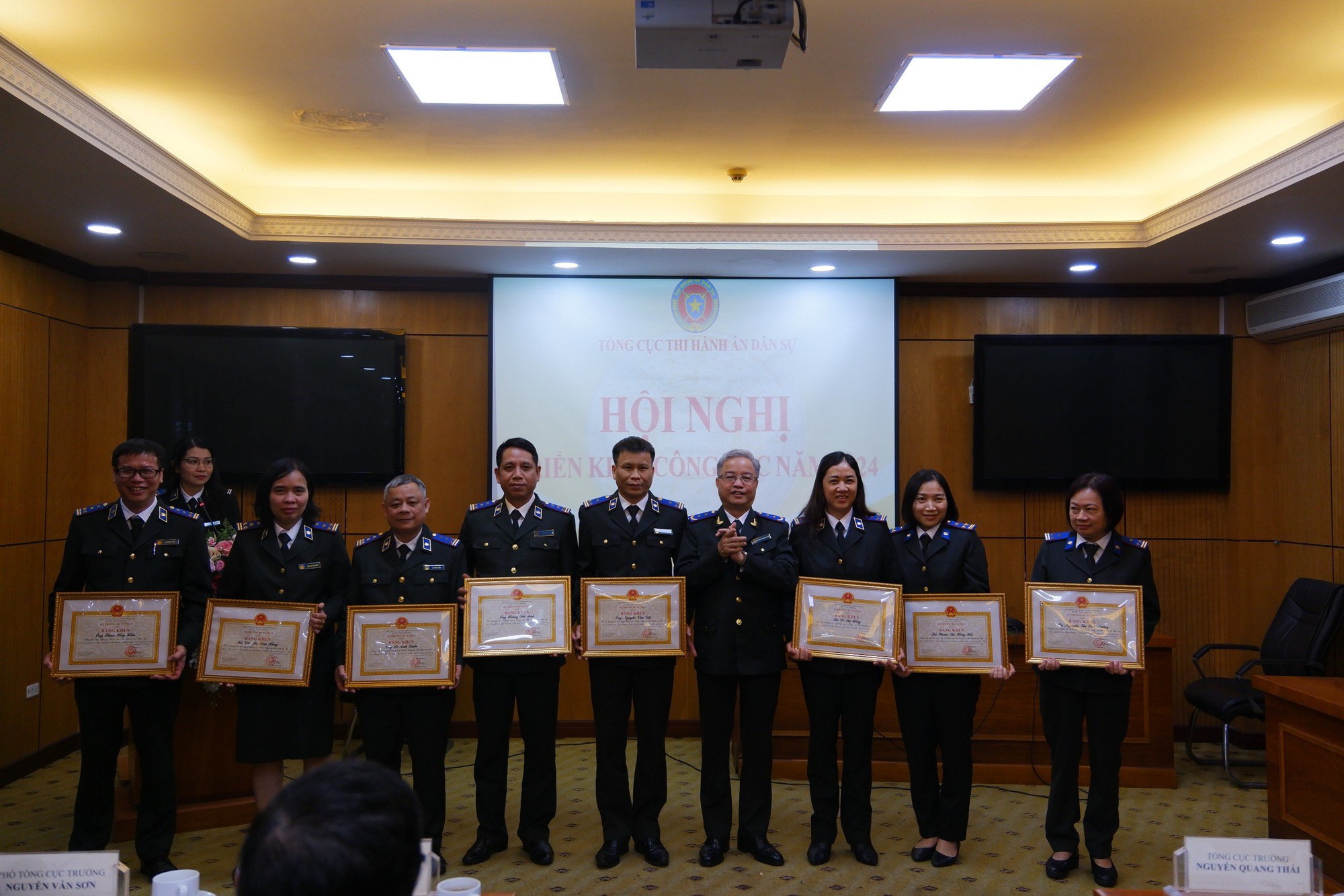 Lãnh đạo Tổng cục Thi hành án dân sự trao Bằng khen của Bộ trưởng Bộ Tư pháp cho các tập thể, cá nhân có thành tích xuất sắc trong công tác - Ảnh: VGP/LS